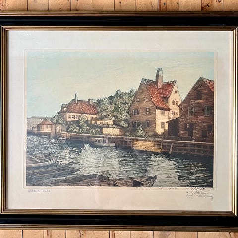 ramme art deco træramme litografi tryk farvetryk tegning
