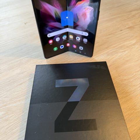 Samsung Galaxy Z Fold2 5G smartphone med 16 GB hukommelse. En foldbar enhed med sort farve og flere kameraer på bagsiden. Telefonen understøtter 5G-netværk og har en stor foldbar skærm, der giver mulighed for udvidet brug og multitasking.