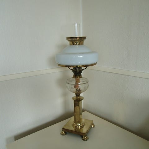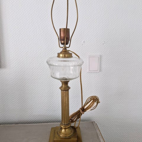 Fin gammel messing lampe. Tidligere været petroleums lampe men er lavet om til el.