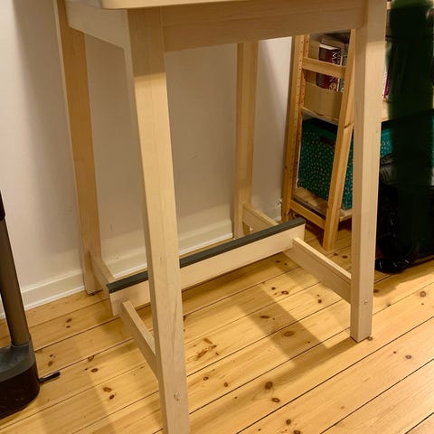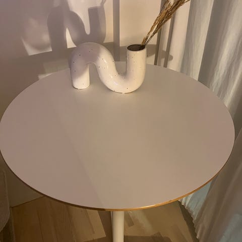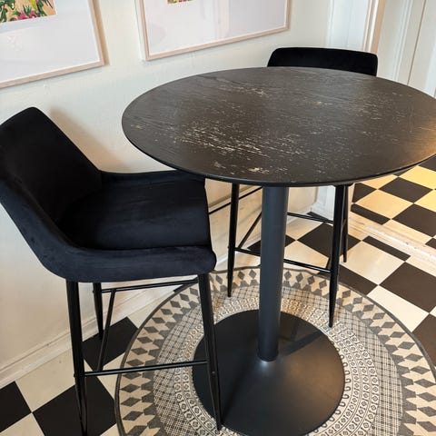 Brugt IKEA Björkudden barbord med 3 barstole. Der findes overfladiske brugsspor, men ellers er bordet og stolene robuste.