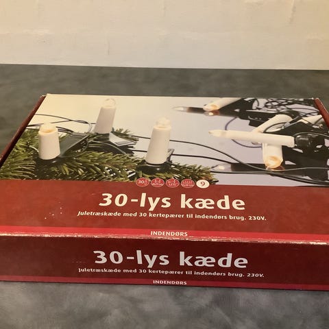 Lyskæden er 190 cm lang og er mørkegrøn så den falder i et med juletræet.