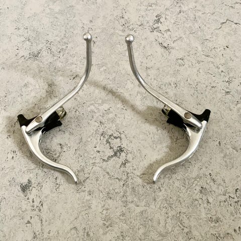 En rigtig klassiker - perfekt til ethvert retro projekt. Pæn stand som vist på billederne. Grebsgummi helt intakt og ikke klæbrigt. Til gennemgående bremsekabler. Kan sendes for + 50 kr. ved forudbetaling