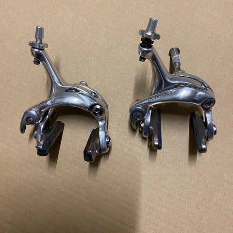 Pæn stand som vist på billederne. Begge fjedre er fortsat meget stramme med intakt funktionalitet. Gode originale Shimano bremseklodser. Spænder fra 47 til 57 mm i bremsekloen. Kan sendes for + 50 kr., ved forudbetaling