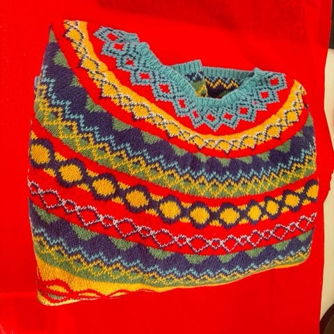 Sweater, Hjemmestrikket., str. 40, Hjemmestrikket unik sweater. Jeg vil tro den kan passe str 38-40-42. Brystvidde 100 cm, længde 62 cm. Blandingsgarn. Ikke brugt særlig meget.