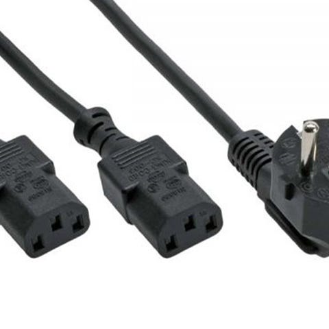 PRIS-MATCH! Apparat strømadapter Y-split kabel (1x Schuko Type F – 2x C13) | 230V vinkel Schuko til apparat Y-split kabel, som gør det muligt at forbinde op til 2 apparater til samme stikkontakt.