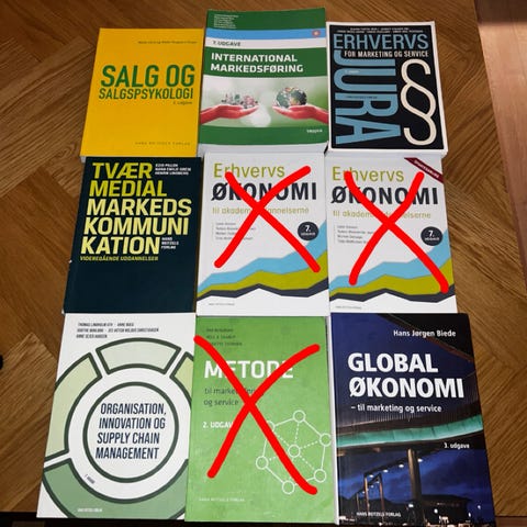 Sælger følgende studiebøger indenfor markedsføring, da jeg skifter over til online-udgaverne i stedet.