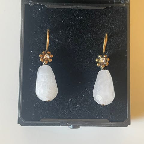 Øreringe med flot mønster i røde, orange, blå , sorte m.fl. farver. Åbne. Diameter 5 cm. Fra ikke ryger hjem.