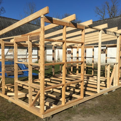 Anneks 9 kvm opført i august 2025 med møbler og pitbike