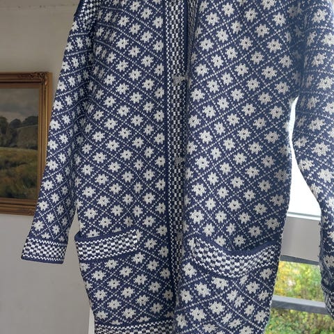Købt på Island. Dejlig islandsk sweater i flot strik. Der står str s men den er stor i str så svarer til en M. Den er kun brugt ganske lidt , så fremstår som ny. Dejlig til den kolde tid.