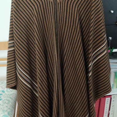 Denne type poncho er en del af Mexicos rige vævetradition og minder om den klassiske sarape, et traditionelt tæppe kendt for sine levende farver og mønstre. Ponchoen er lavet i en tyk, robust kvalitet – sandsynligvis af uld eller en uldblanding, hvilket gør den både slidstærk og varm.