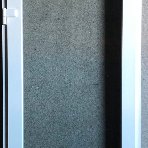 Døren er en enkelt dør i plast med udluftnings ventil. Den trænger til rengøring.