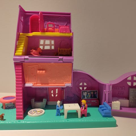 Fint lille hus med hund og dukke. Skiltet i haven er desværre knækket, men kan følge med, hvis man vil lime det på igen.