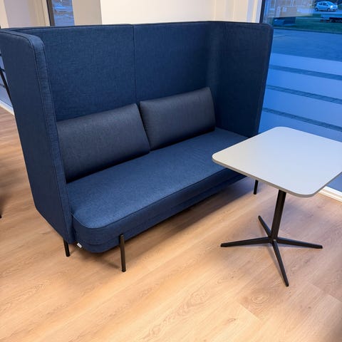 Kupésofa. FourDesign. FourUs Booth. Mørkgråt uld. Bord.