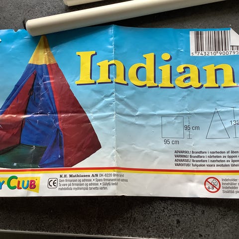 Andet legetøj, Lege indianer telt, Som nyt. Fint telt til de mindste i hvid bommuld. Måler ca. 150cm i højden.