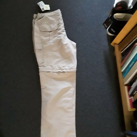 Beige vandrebuks af mærket Geoff Anderson med technical protection (sol beskyttelse) - letvægt og hurtigtørrende materiale. Seks lommer. Lynlås så buls kan bruges enten som lange eller shorts. Som nye.