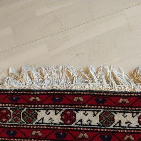 Brugt og ældre måtte. Mener det er håndknyttet og fra Iran. Farverne er meget blegede af sol og tiden? Se detaljer på billeder