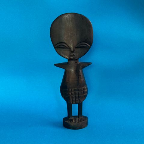 Afrikansk træfigur af kvinde ca. 43 cm høj. Den er købt i Gambia for ca. 20 år siden.