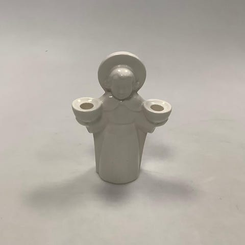 Aluminia fajance engel lysestage til to små lys. Måler 14cm høj.