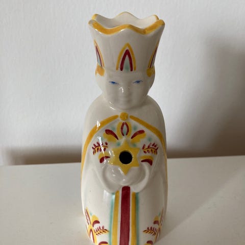 Aluminia fajance engel lysestage til to små lys. Måler 14cm høj. Hel og fin stand. Pris 550kr.