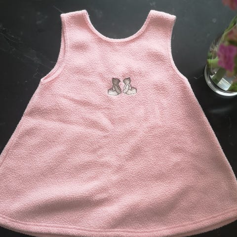 Alt fra sparkedragter, kjoler, nederdele, skidragter, bluser, bukser, natsæt, shorts, heldragter, hjemmestrik, huer, sutsko osv.
