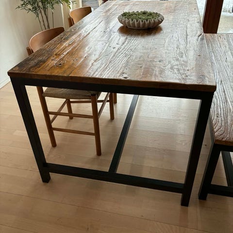 Flot spisebord fra ILVA med massiv egetræsplade og sorte metalben. Helt nyt og aldrig brugt. Købt i ILVA, men sælges grundet fejlkøb.