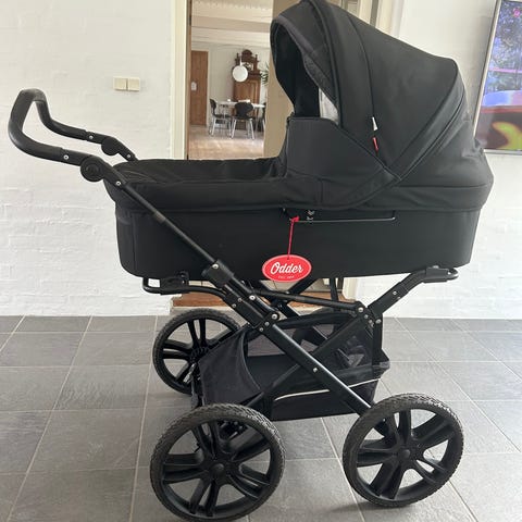 Odder North barnevogn i farven lys grå. Den er fra 2020, men har ikke været brugt de sidste 2,5 år. Plejet og passet på, altid stået inde.