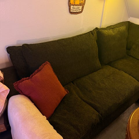 Vi sælger vores elskede sofa, fordi den desværre er for stor til vores stue.