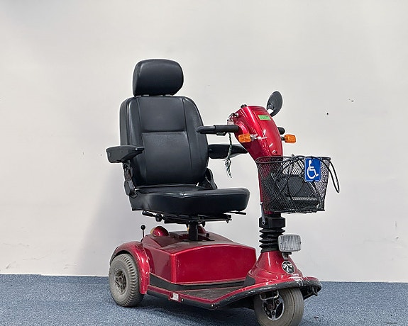 Brugt 4-hjulet el-scooter i en flot rød farve. Scooteren er udstyret med luksussæde, så du sidder godt tilbagelænet på køreturen.