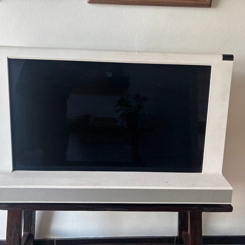 BeoVision 8-32 i hvid. Pæn stand. Sælges med fjernbetjening samt originalt drejbart vægbeslag.