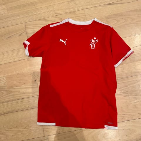 Puma Danmark håndbold trøje i rød med hvide detaljer på skuldrene. Fremstillet i let materiale egnet til sport og træning.