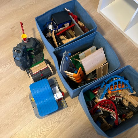 Der er knap 50 skinner i forskellige længder og 8 tog