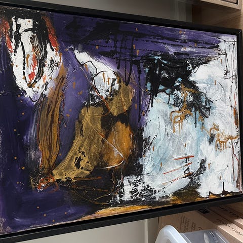 Vi har dette maleri af Lilly Kristensen liggende. Den er lavet på stof