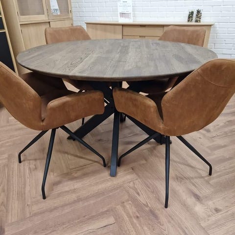 Nyt rundt plankebord med 4 nye stole - 17795 kr.