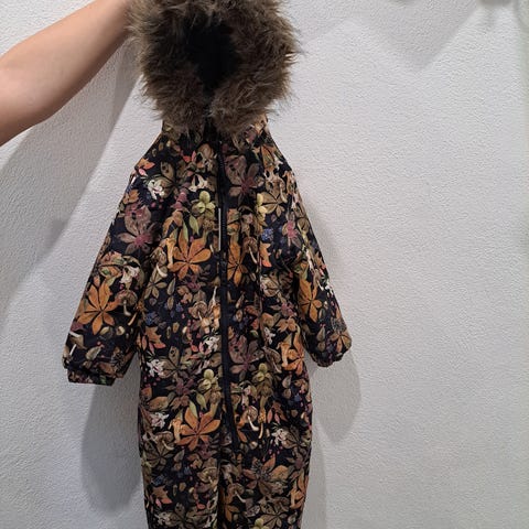 Flyverdragt fra Name It med dobbelt lynlås. Der er slidtage bagpå, og et lille hul ved det ene ærme (se billeder). Kan fortsat bruges, evt som ekstra flyverdragt hen over vinteren.