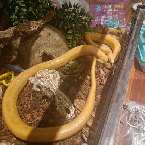 Terariet og alt indhold deri følger med, mål: dybe 61, højde 61,5 længde 152 cm.