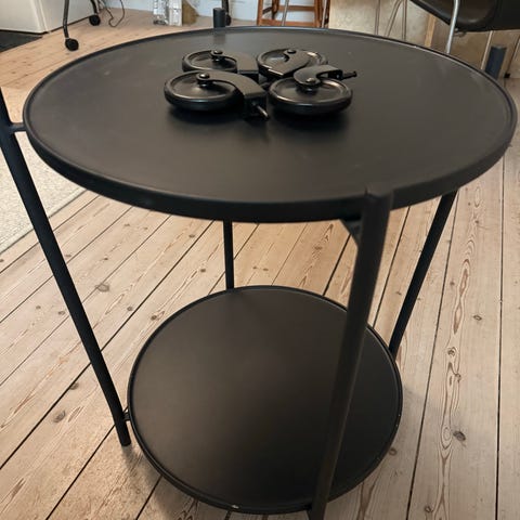 - Alsidigt rullebord der kan anvendes som barbord, sofabord, sengebord eller bakkebord.