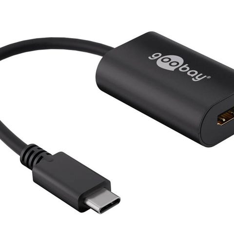 Bruges til at forbinde enheder med USB-C port til en skærm eller projektor med VGA input. Farve: sort. Materiale: plast og metal.
