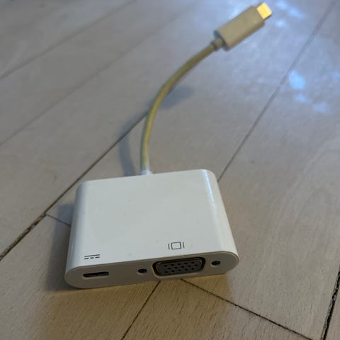 Adapter med USB-C (han) i den ene ende og VGA (hun) i den anden.