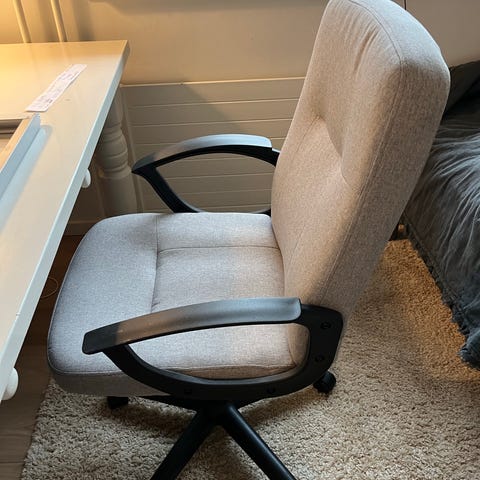 Kontorstol, Sælger min kontorstol med ergonomisk sæde, så man sidder rigtig godt og korrekt, fordi hoften er højere end knæhøjden Sædet er hvidt i hårdt pvc materiale og pumpe funktionen giver mulighed for 2 højde indstillinger på henholdsvis min. 53 cm til max. 80 cm.