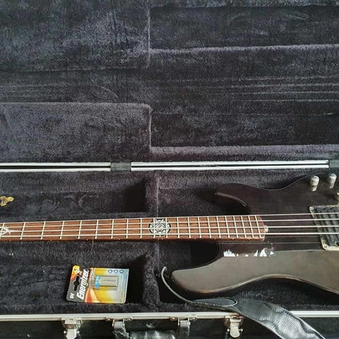 Super fed Dingwall D-Roc 4-strenget i farven mat-sort. Inkl. specialbygget flightcase, original Dingwall læderrem m. Dunlop Straplocks, + ekstra sæt Dingwall multi-scale strenge. Kun brugt få timer, 100% i orden- Alt som nyt. 1 ejer. Samlet nypris 20.000 kr.