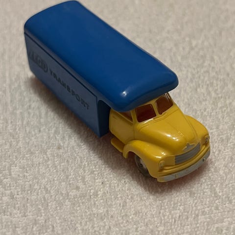 LEGO 7817 Kranvogn legetøj med rødt og sort farvetema, indeholder en kran med bevægelige dele og gul last bestående af LEGO klodser. Modellen er lavet af plastik og er designet til børn.