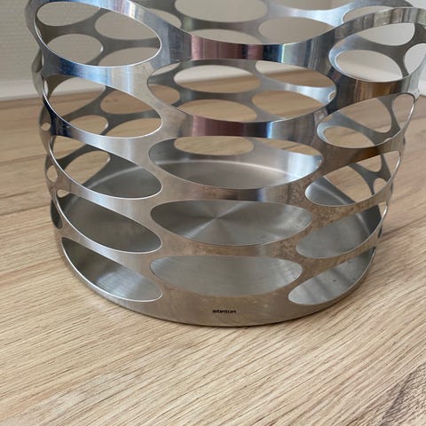 Frugt/brødkurv i rustfri stål fra Stelton model Embrace. Designet af Halsskov & Dalsgaard.