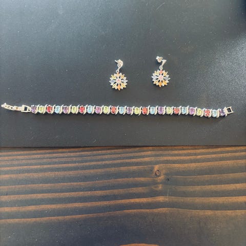 Oxyderet sølvarmbånd og to par ørestikker fra Guldsmed Dirks, brugt meget lidt, er i pæn stand.