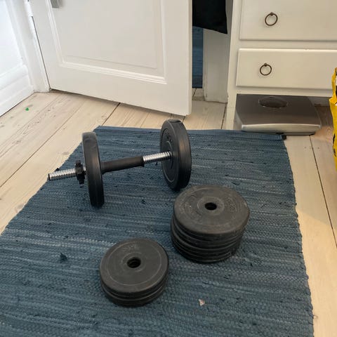 Disse 4 vægtskiver er velegnet til professionel vægtstangstræning derhjemme. Vægtskiverne er dækket med robust, gulvvenligt plastik. Slidstærkt materiale: Vægtskiverne er fremstillet af cement, og de er dækket med robust og gulvvenligt plastik. Dermed slipper du for irriterende klirrelyde.Tydelig vægt på skiverne: Vægten er tydeligt stemplet på hver vægtskive for hurtig og nem identificering.Variabel vægtvalg: Disse vægtskiver består af 2 forskellige vægte: 2 x 10 kg og 2 x 5 kg. De forskellige vægte opfylder dine forskellige træningsbehov.Multifunktionel håndvægt: Den multifunktionelle vægtskive er velegnet til træning af bryst-, biceps-, arme-, triceps- og rygmuskler.Vi har en overraskelse til dig! Brug rabatkoden dbaXL, når du betaler, og så får du 10% ekstra rabat. Denne rabatkode kan kun bruges til vidaXL-mærkede produkter, og den kan anvendes med et minimum købsbeløb på 750kr. God shoppingtur!