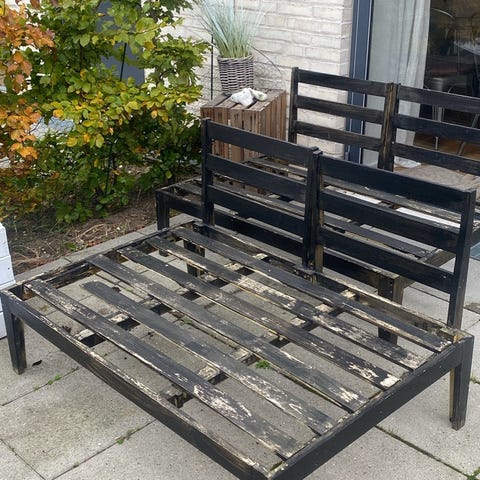 Havesofa og matchende bord sælges. Puder og madrasser blev skiftet ud sidste år og fremstår som nye. Sofa og bord er brugt sparsomt og i super stand.