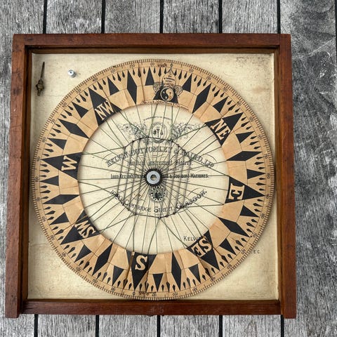 Gammelt pejlekompas i messing fra Weilbach&Co.