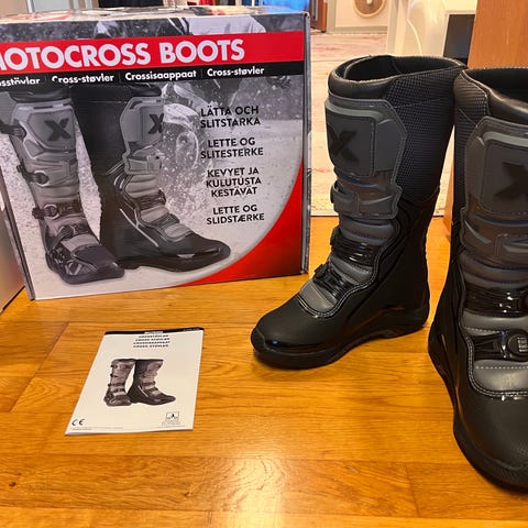 Brugt 2 gange på landeveje, de var for stive (var vandt til normal mc støvle med ankel vrid) sælges da jeg ikke får dem brugt, de har aldrig set en motocross bane, derfor den gode stand.