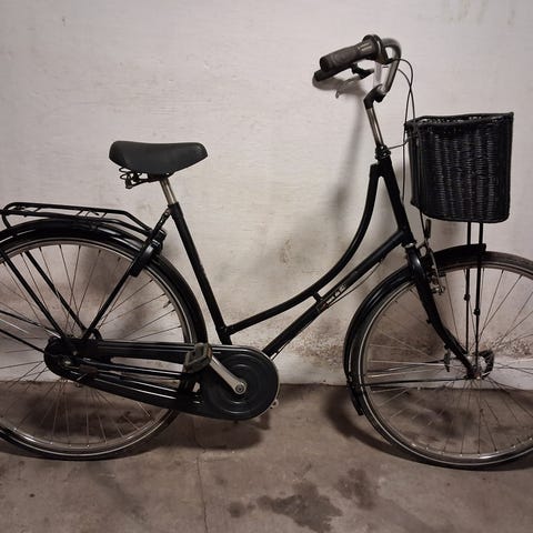 Sød lille bycykel. Trænger til en kærlig hånd og måske et par reparationer. Har stået i et skur i et par år. Kom med et bud.