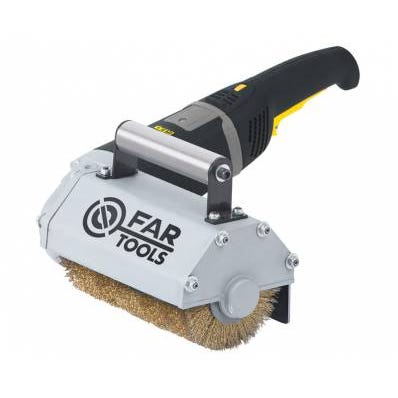 Kraftig metalbørste til både REX120, REX200 og Power Multi slibemaskiner. Bruges til grovere slibearbejde på træ, sten og fliser. Denne børste her har kortere og dermed stivere tråde. (Tidligere solgt med messing coating - men stadig samme varenr.) Husk sikkerhedsbriller ved alt slibearbejde. Diameter 120 mm Bredde: 100 mm Monteringshul: Ø20 mm Nr. 8005890 OBS - husk at tilkøbe 2 stk. 8008552 not, hvis denne børste skal bruges på REX maskinerne. Passer sammen med nedenstående slibemaskiner. Se også de andre metalbørste i dette system