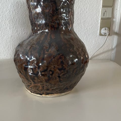 Glasuren har en blanding af hvide, lilla og brune nuancer...